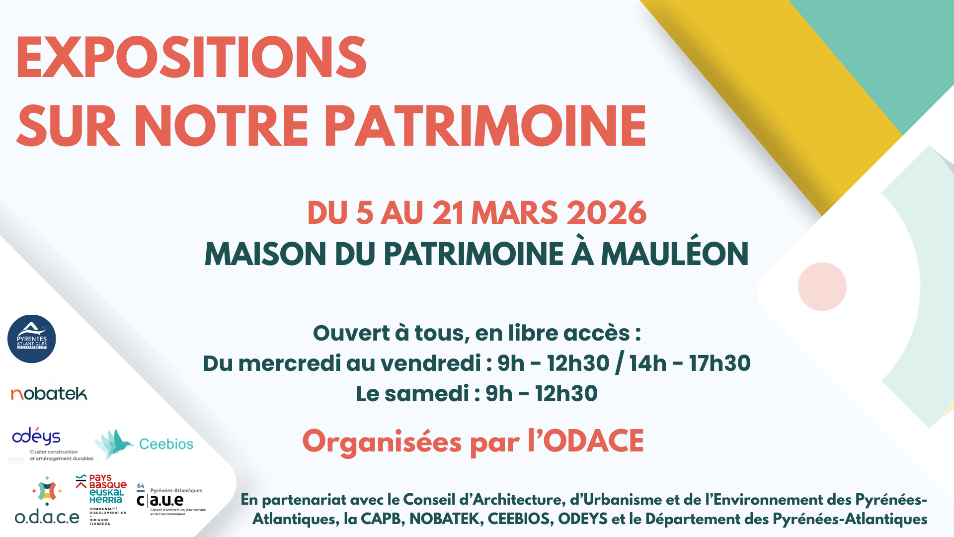 À l’occasion de la Journée du Bâtiment en Soule organisée par l’ODACE, nous mettons en lumière notre patrimoine via trois expositions en une du 5 au 21 mars à la Maison du Patrimoine à Mauléon.