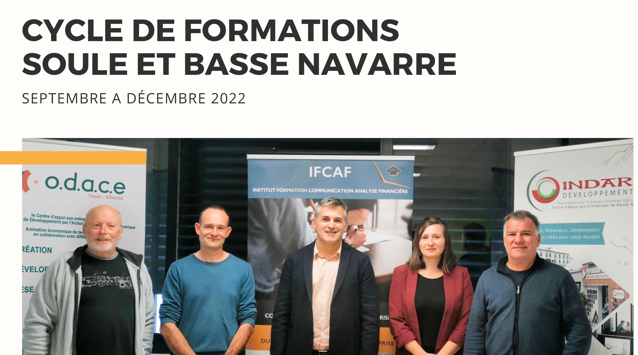 Pour la cinquième année consécutive, l’ODACE s’associe à INDAR DEVELOPPEMENT et au centre de formation IFCAF, pour proposer des formations riches et variées, à destination des chefs d’entreprises et leurs salariés, dans les pépinières d’entreprises de Soule et de Basse-Navarre. Ces formations sont assurées par les intervenants de l’organisme IFCAF, certifié QUALIOPI au titre des Actions de formation, et peuvent être prises en charge par les OPCOS des différentes branches professionnelles.