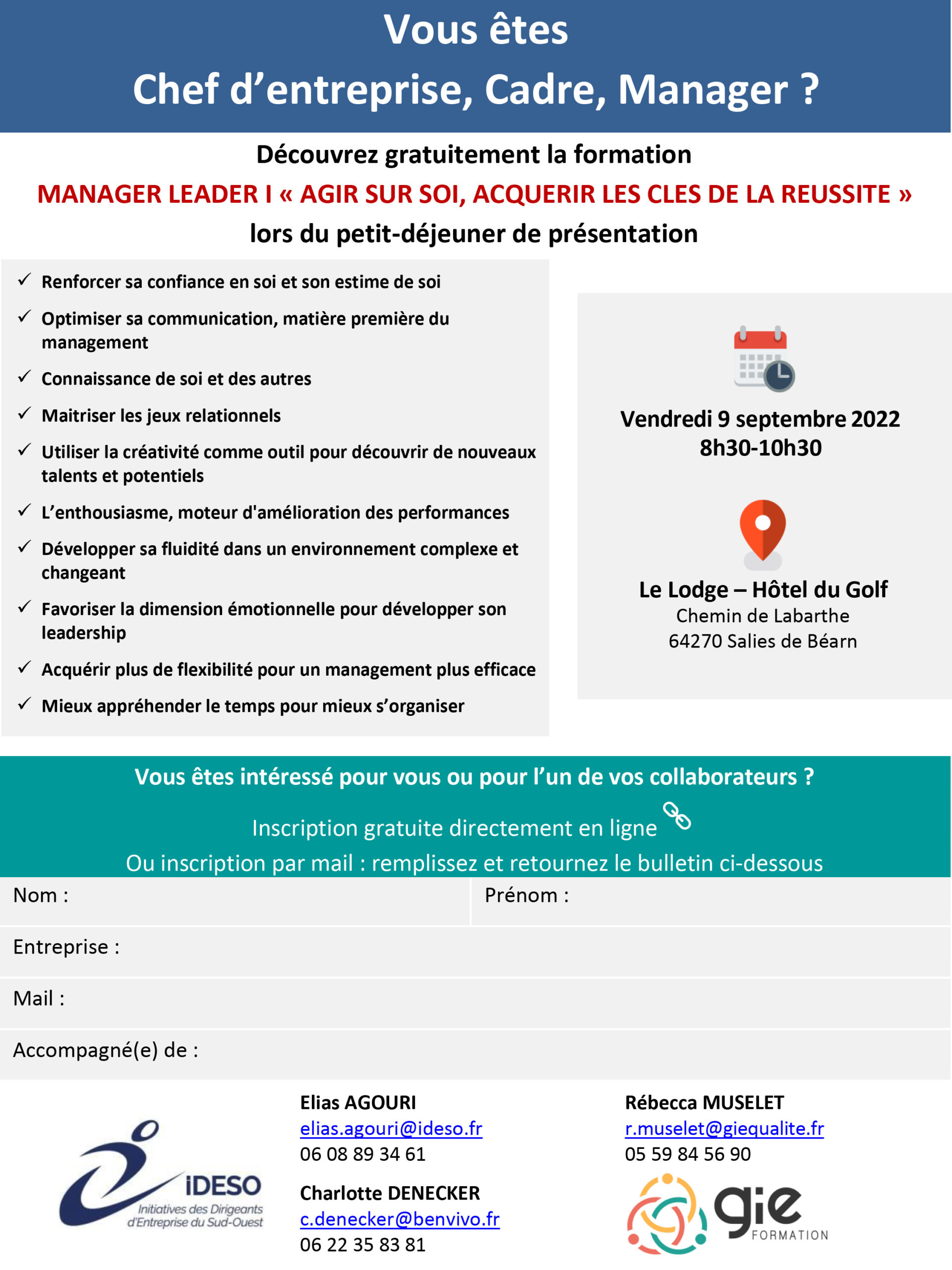 Le Petit DĂ©jeuner de prĂ©sentation aura lieu le vendredi 09 septembre 2022 au Lodge Ă Salies de BĂ©arn de 8H30 Ă 10H30. đ„âđ