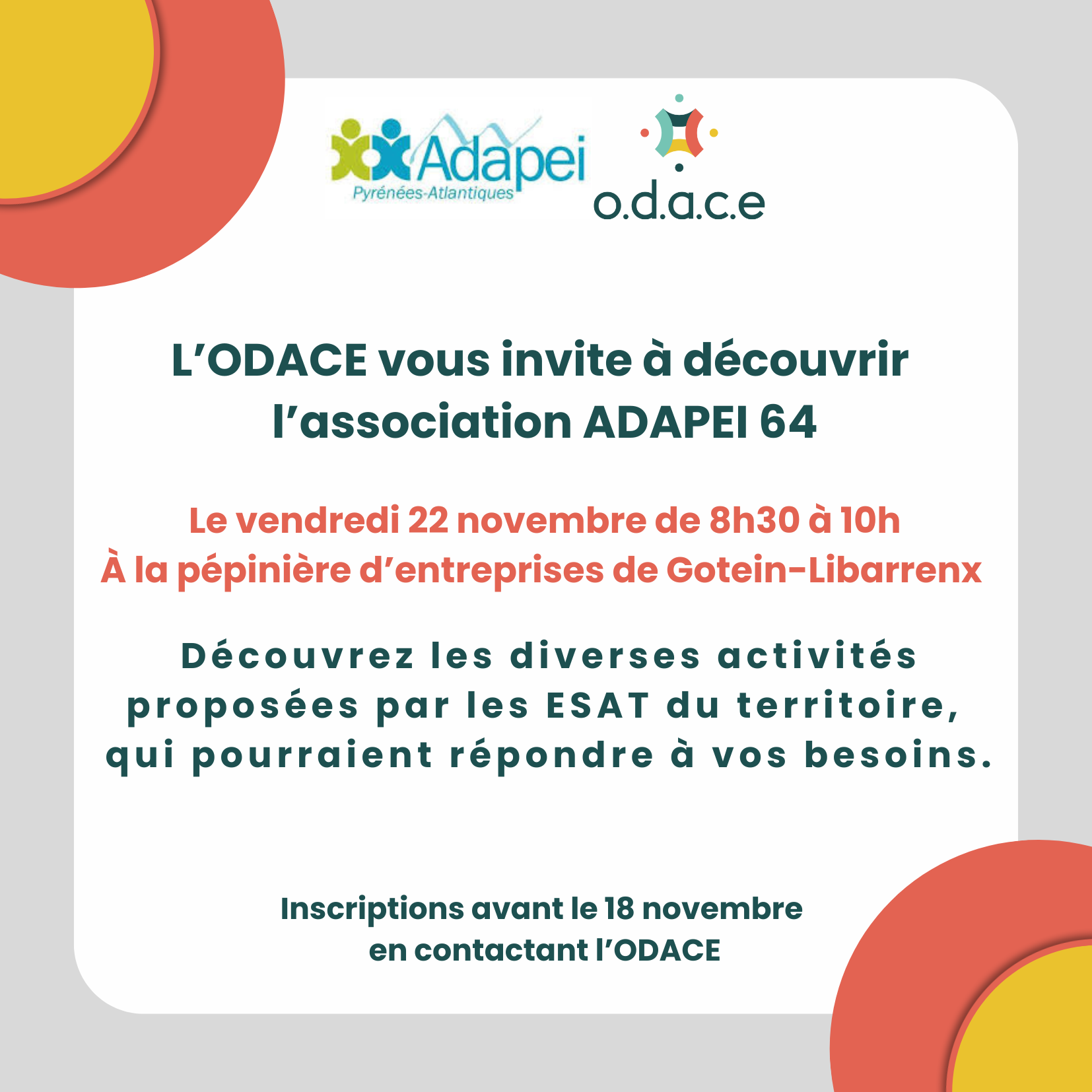L’ODACE vous propose de rencontrer l’ADAPEI 64, association d’intérêt public qui accompagne les personnes en situation d’handicap tout au long de leur vie.