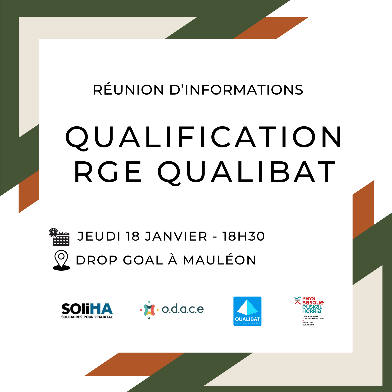 L’ODACE organise avec SOLIHA et QUALIBAT une réunion d’informations pour les artisans dédiée à la Qualification RGE QUALIBAT le Jeudi 18 janvier à 18h30 au Drop à Mauléon.