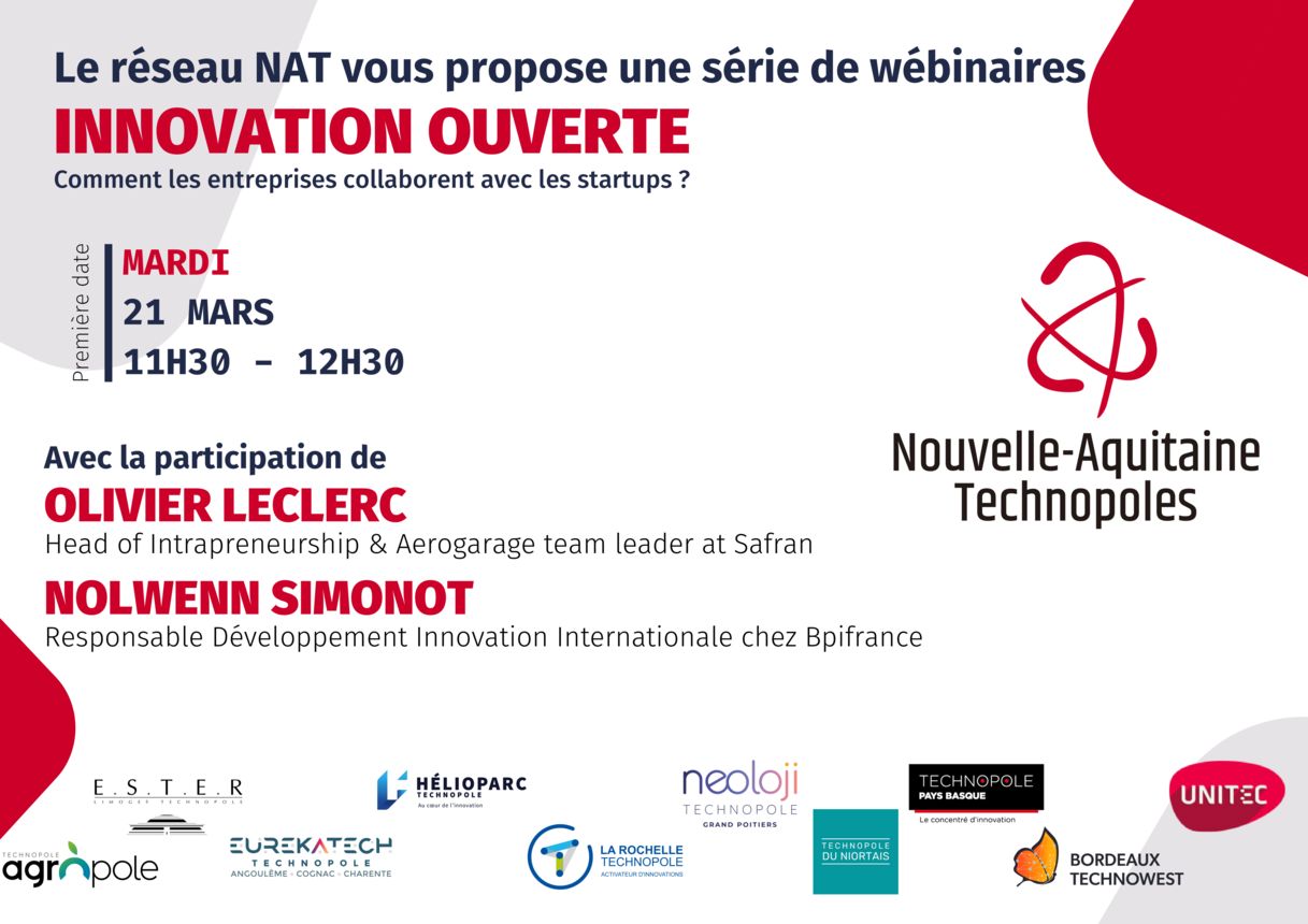 Ces thématiques seront abordées dans le cadre du premier cycle de webinaires sur l’innovation ouverte du réseau Nouvelle-Aquitaine Technopoles, organisé en ligne le 21 mars prochain, de 11h30 à 12h30.